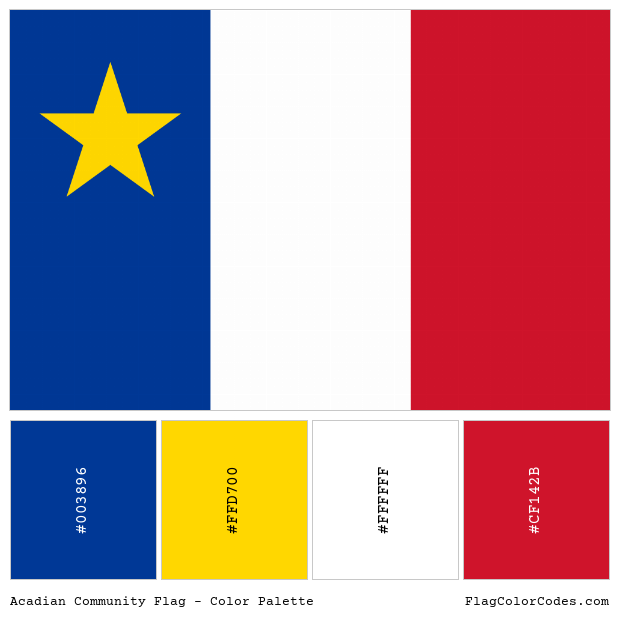 Acadian Community Flag Color Codes with HEX, RGB, CMYK & Pantone