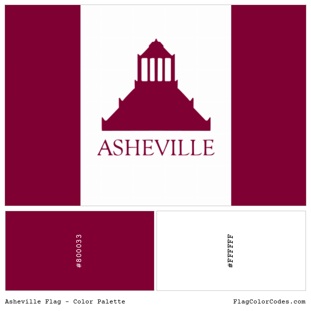 The Asheville flag has 2 primary colors, which are red and white. The table below has the common and popular codes of these colors in HEX, RGB and CMYK formats along with Pantone (PMS), RAL and NCS (Natural Color System). Please note that HEX and RGB codes are to be used for digital works and web pages (including HTML and CSS) while the CMYK values are for printers.