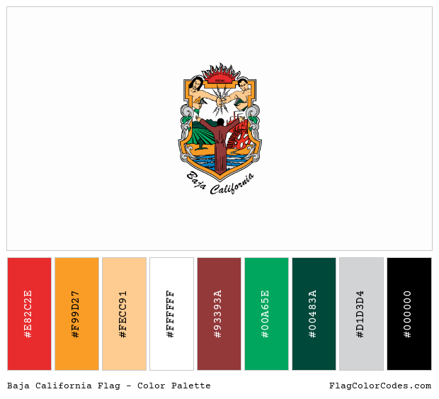 Download the Baja California flag Color Palette image along with the color hex codes as a single image. These are the suggested colors to be used for digital media. For print and spot color values, please refer to the information above. The Pantone® (PMS) values and RAL.